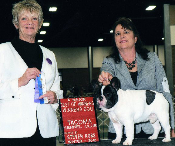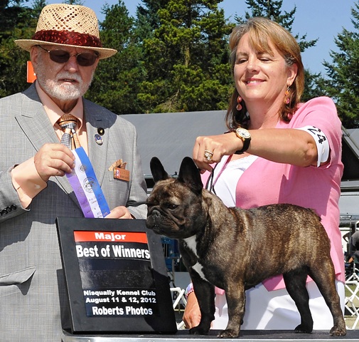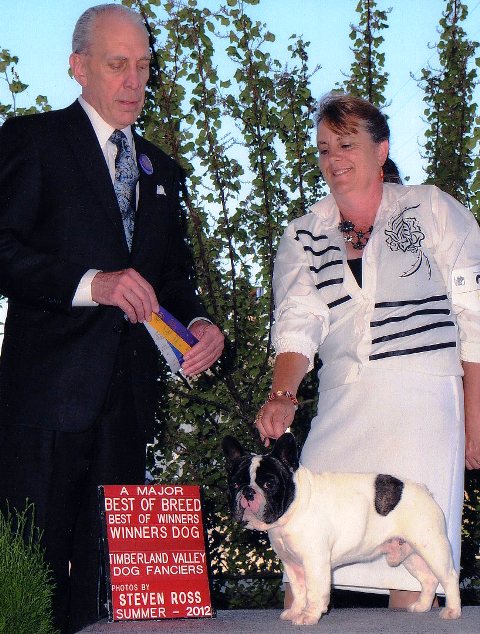 Smokey Valley's Red Bull- 2 First place in class placements at the Clubs Independent Parent Club and the French Bulldog Club of America National Specialty Show. ( pied male)